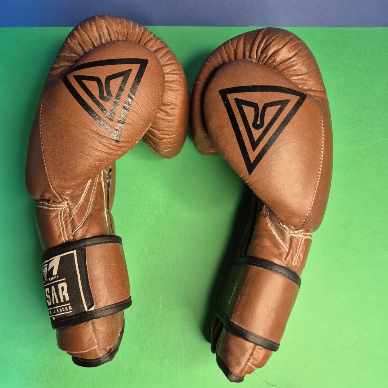 دستکش بوکس چسبی حرفه ای CESAR رنگ قهوه ای بسیار جذاب مناسب تمرین و کیسه زنی و اسپارینگ . کیفیت درجه یک . سایز 14 اونس